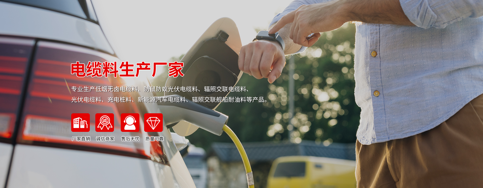 专业生产低烟无卤电缆料、防鼠防蚁光伏电缆料、辐照交联电缆料、光伏电缆料、充电桩料、新能源汽车电缆料、辐照交联舰船耐油料等产品。